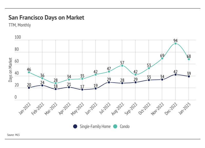 Even as the monthly mortgage cost has increased dramatically, the median price for single-family homes has declined 32%, and the median condo price has declined 25% (although when we look at median price per square foot both median single-family and condo prices only declined 15% year-over-year).
