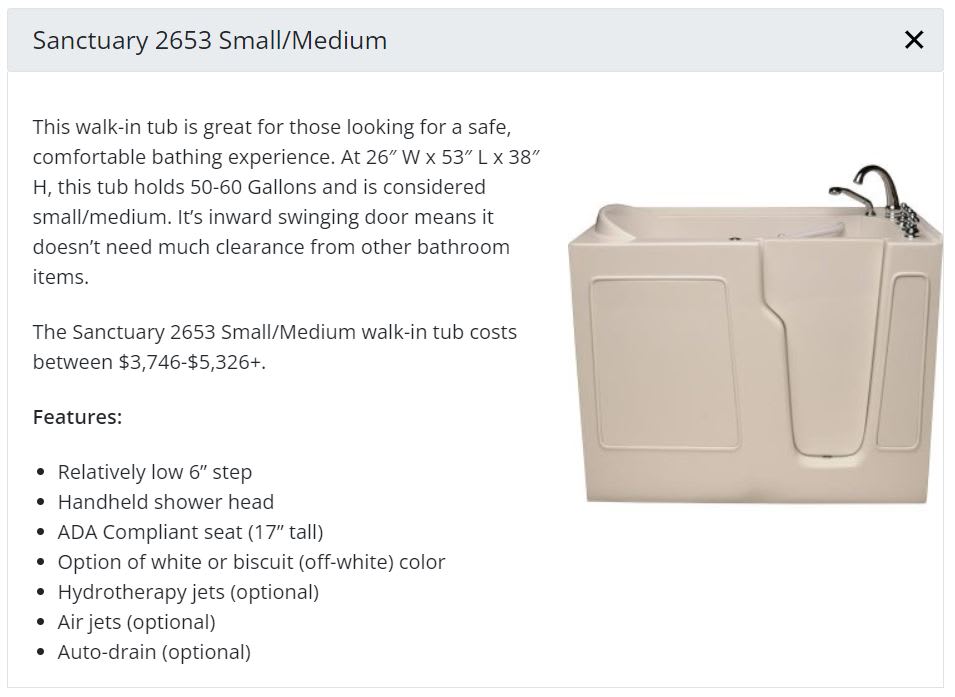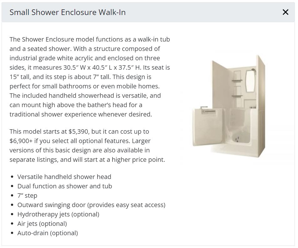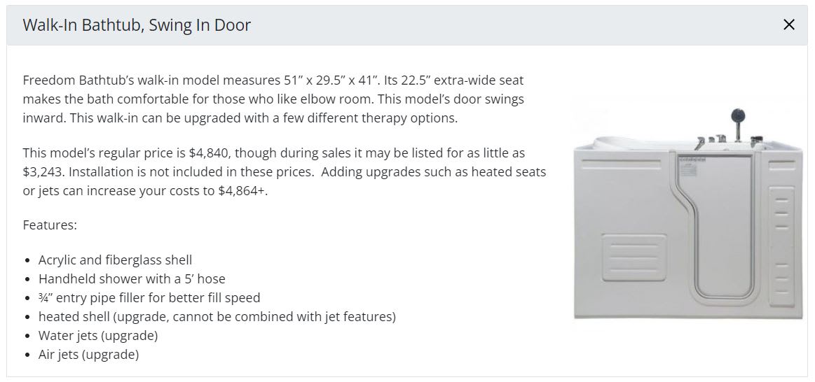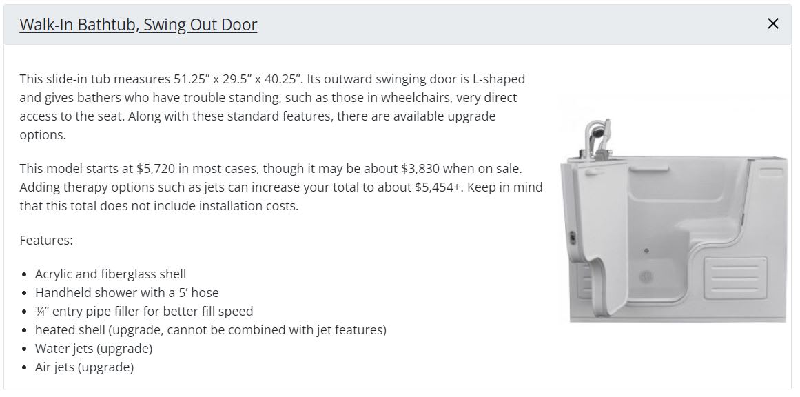 In our review, we’ve included companies that disclose costs early and late in the sales process because both kinds of companies make excellent walk-in tubs.