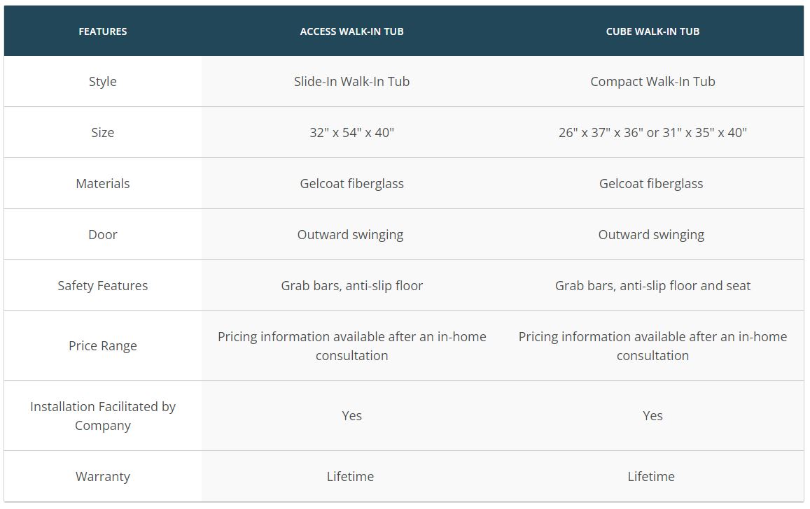 We’ve chosen to review the Access Walk-In bathtub and the Cube Walk-In Bathtub because these two tubs appeal to different needs.