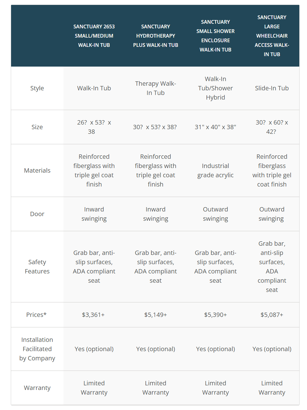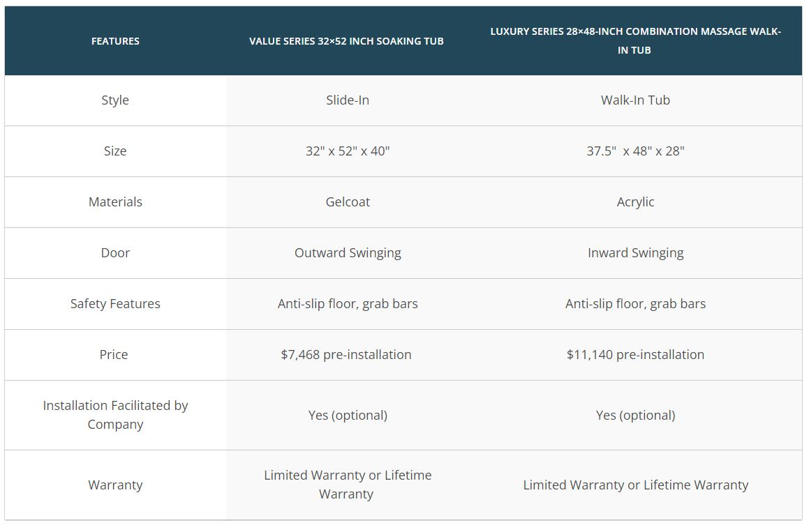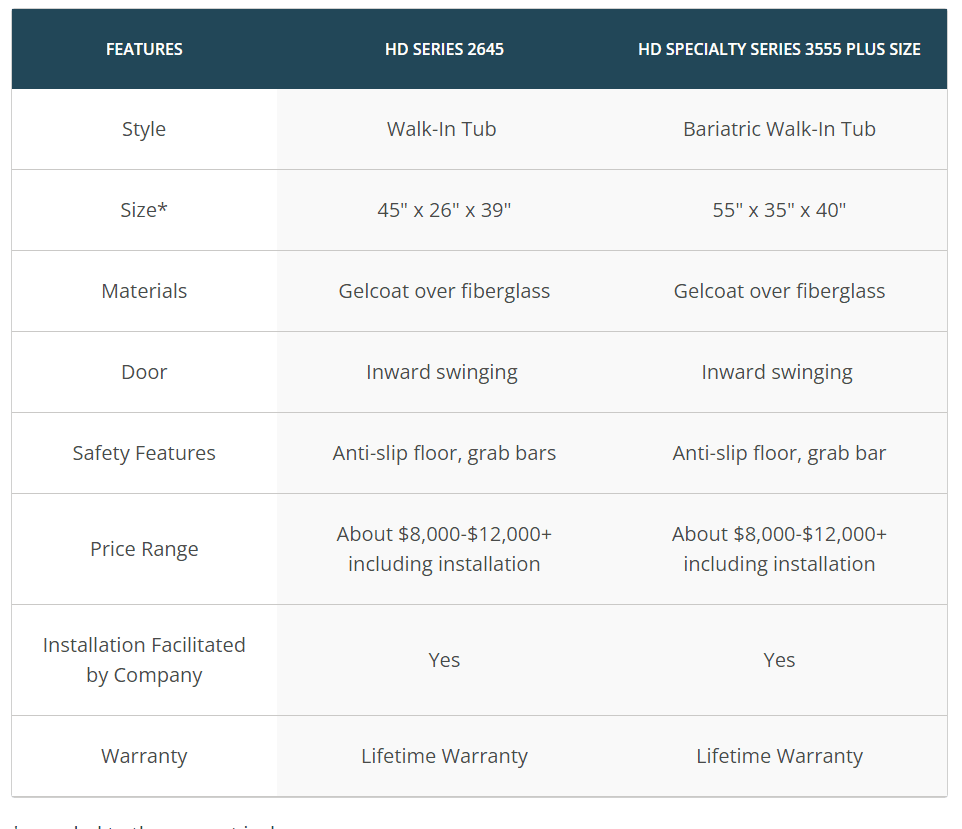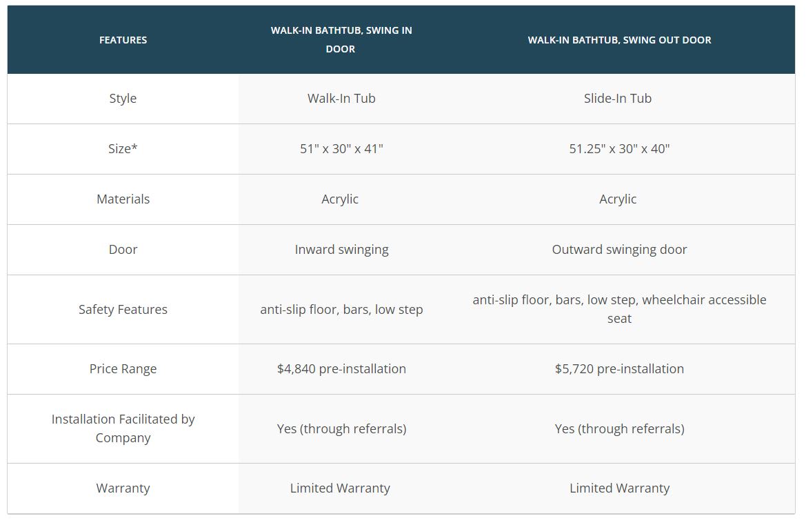 For a quick overview of our findings on the top 11 walk-in tub companies in the U.S., view the table below.